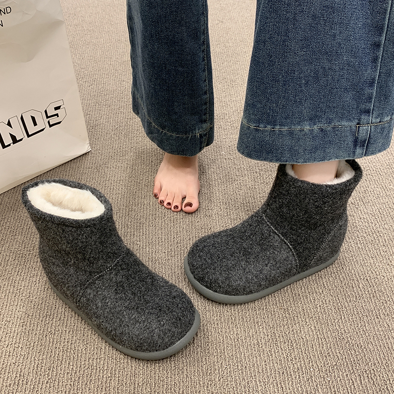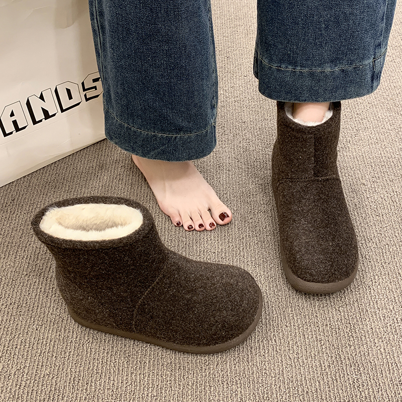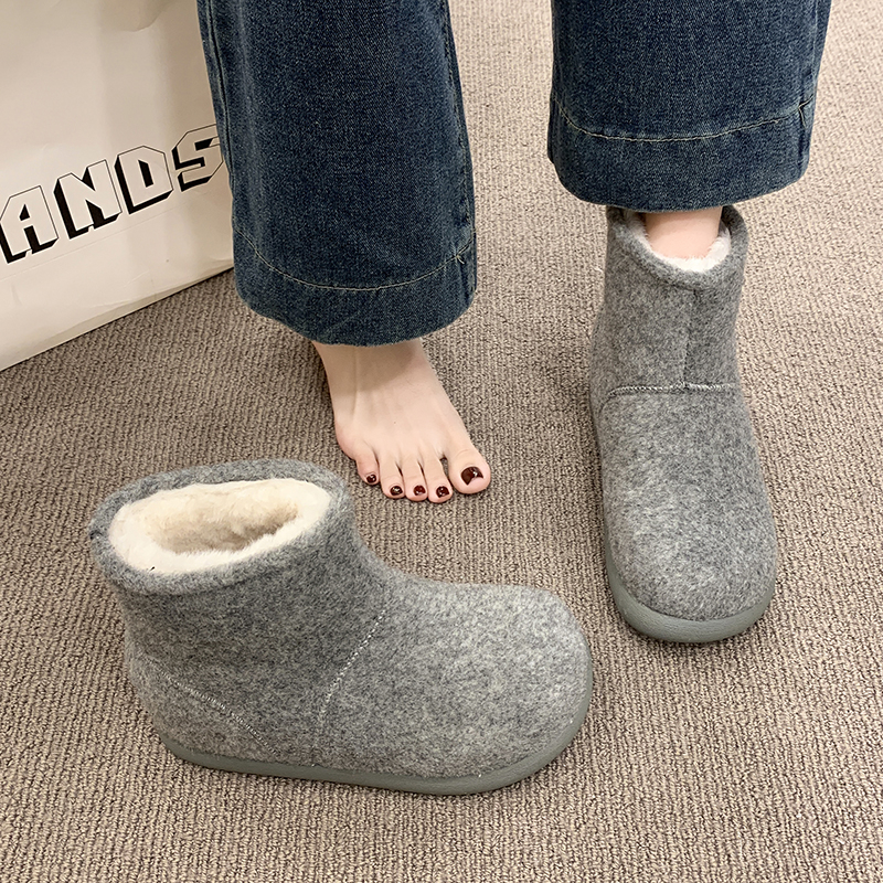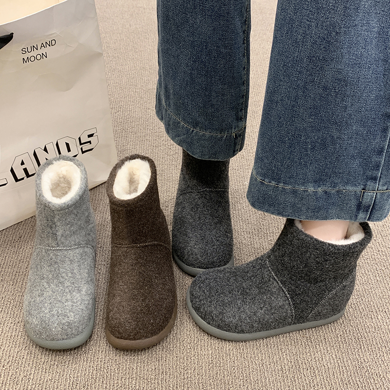 女靴子靴子韩版潮时尚保暖防滑绒面短靴圆头