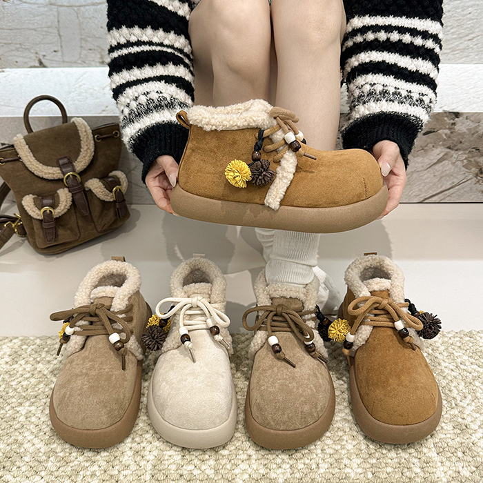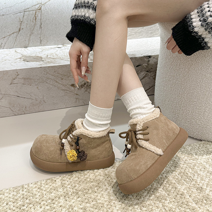 女靴子靴子韩版潮时尚保暖防滑绒面短靴圆头