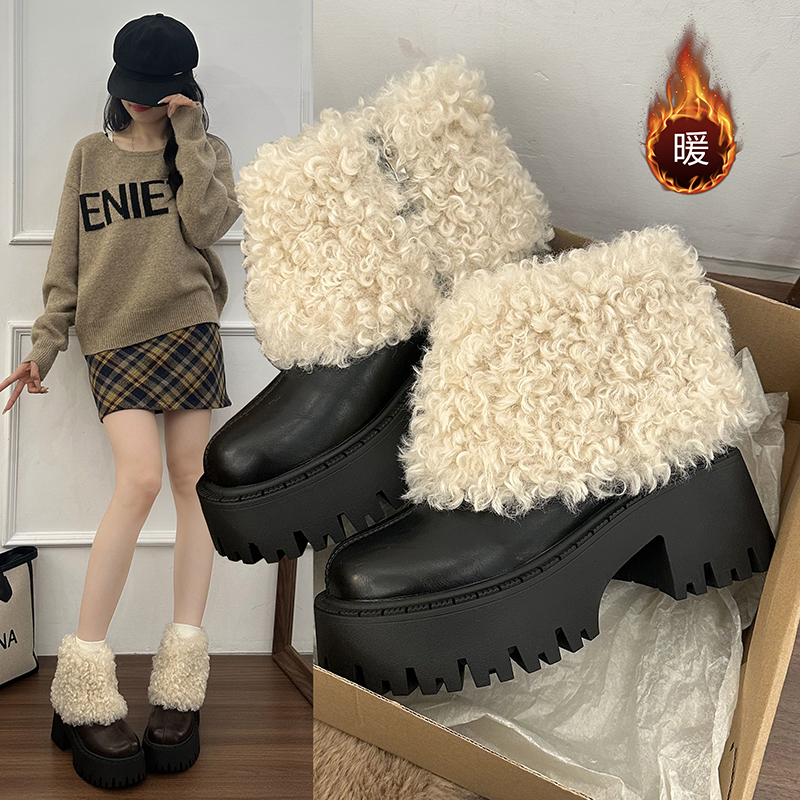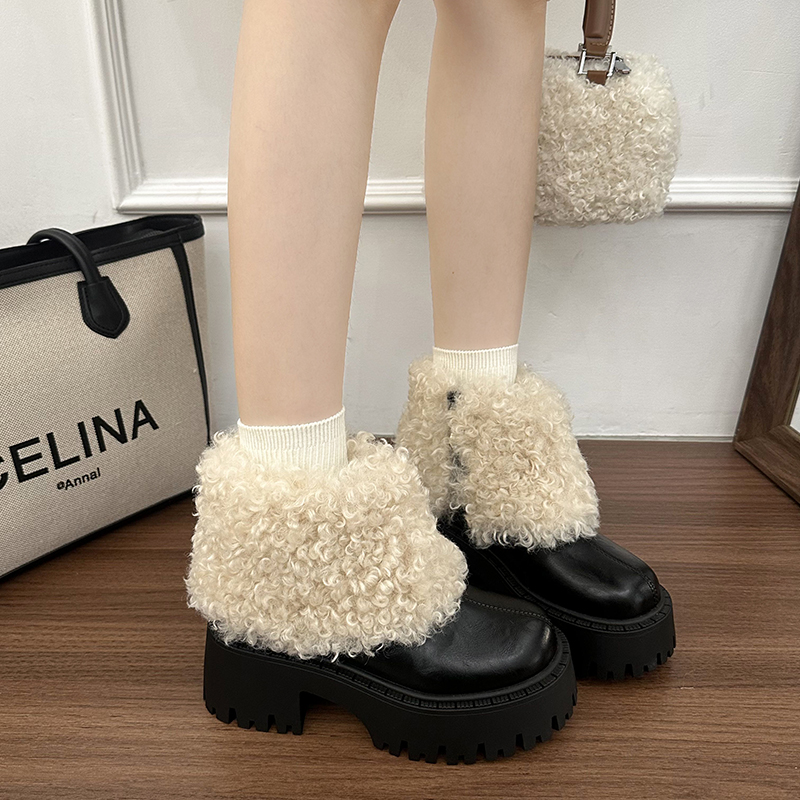 女靴子靴子韩版潮时尚保暖防滑绒面短靴圆头