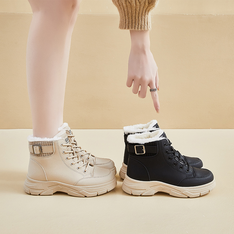 女靴子靴子韩版潮时尚保暖防滑绒面短靴圆头