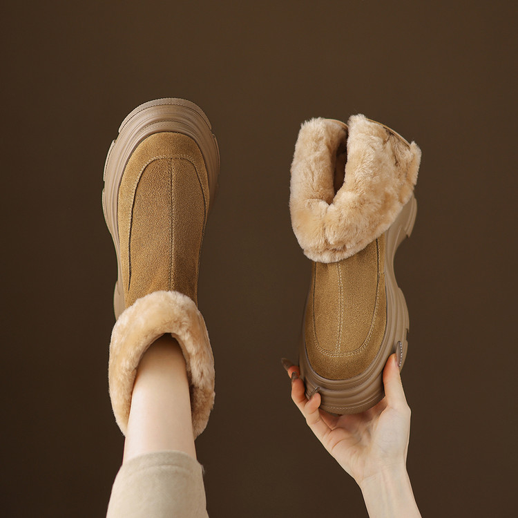 女靴子靴子韩版潮时尚保暖防滑绒面短靴圆头