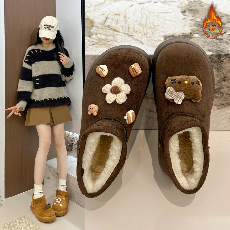 女靴子靴子韩版潮时尚保暖防滑绒面短靴圆头