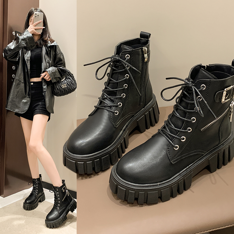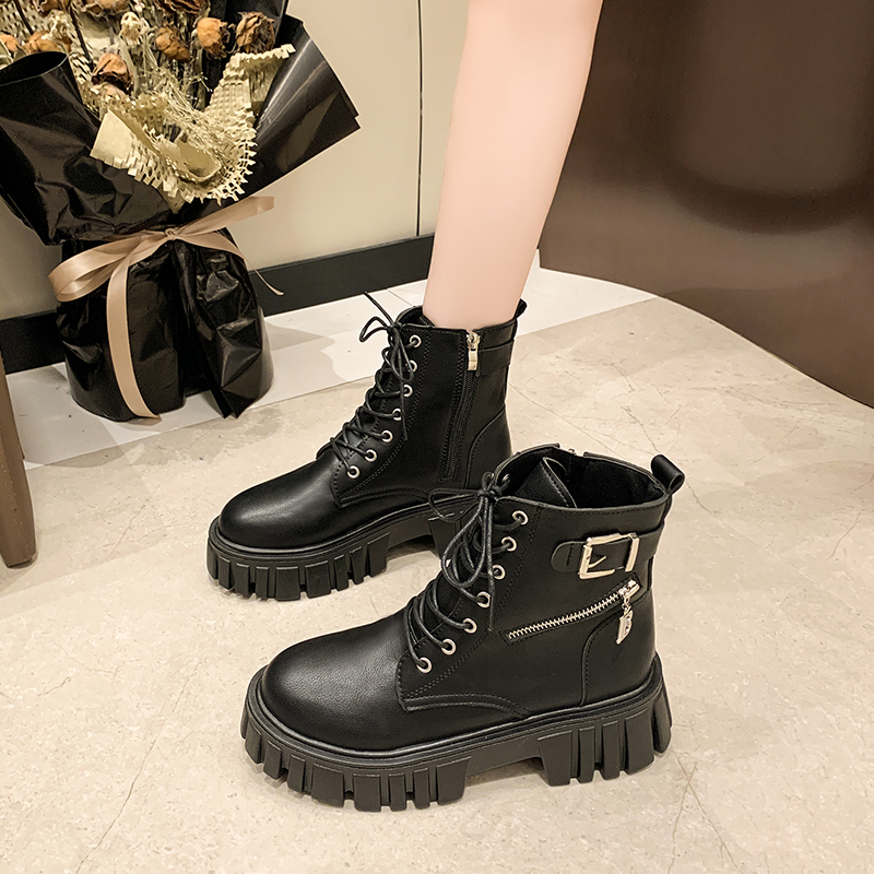 女靴子靴子韩版潮时尚保暖防滑短靴圆头粗跟