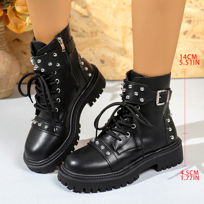 女靴子靴子韩版潮时尚保暖防滑短靴圆头粗跟