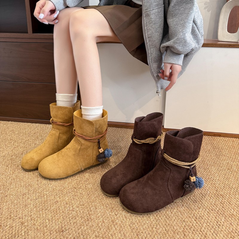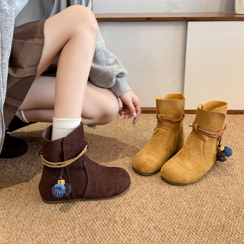 女靴子靴子韩版潮时尚保暖防滑短靴圆头粗跟