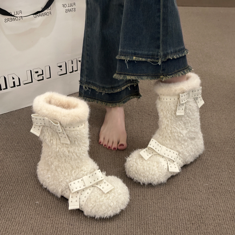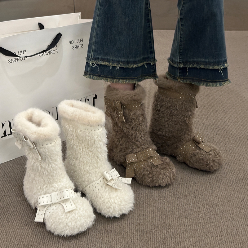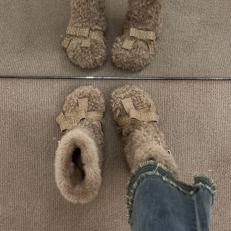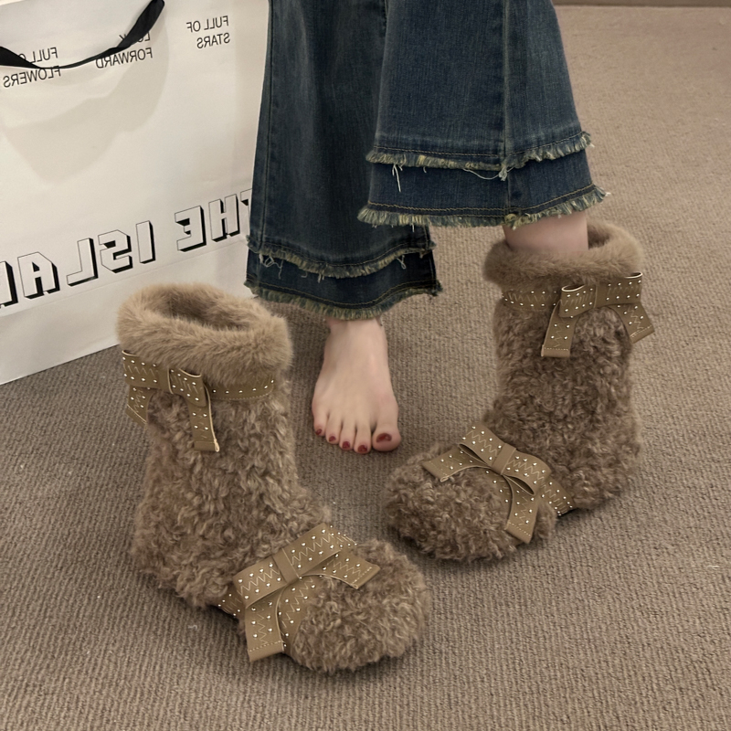 女靴子靴子韩版潮时尚保暖防滑绒面短靴圆头