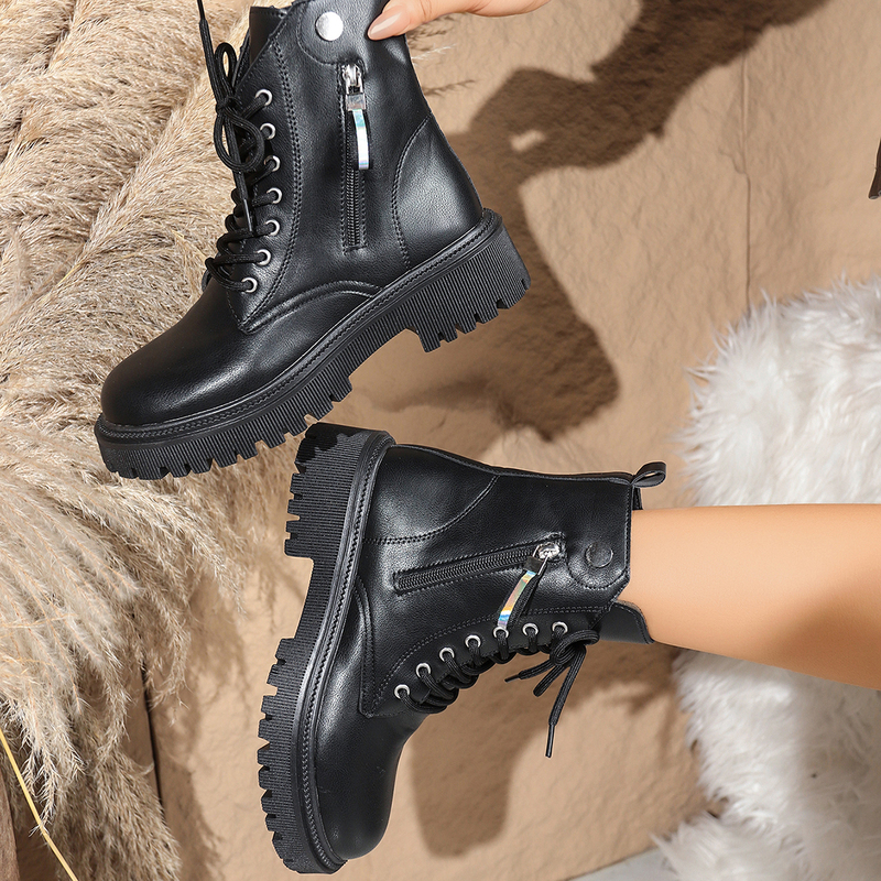女靴子靴子韩版潮时尚保暖防滑短靴圆头粗跟