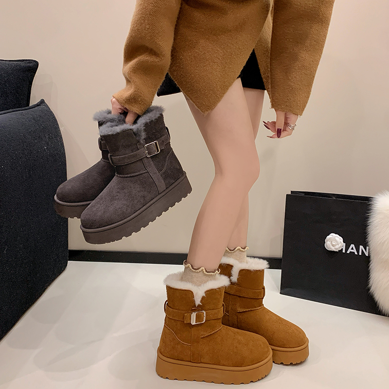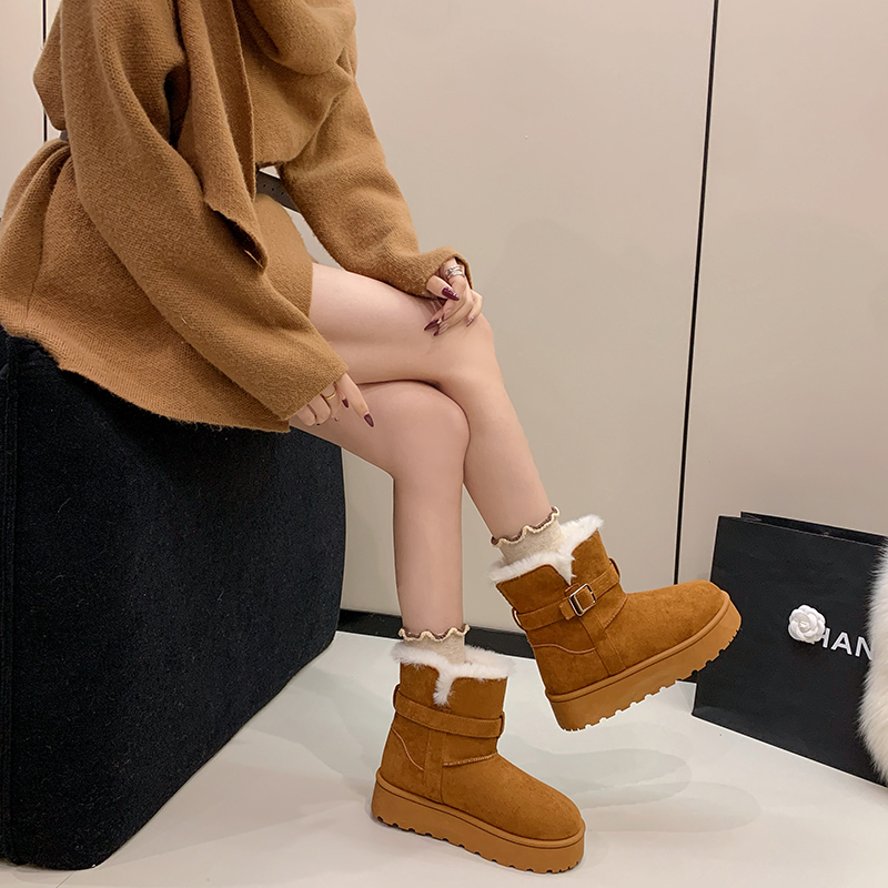 女靴子靴子韩版潮时尚保暖防滑绒面短靴圆头
