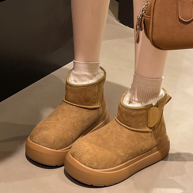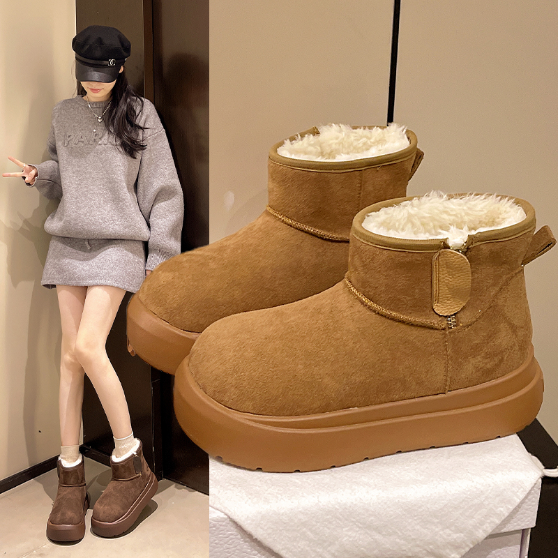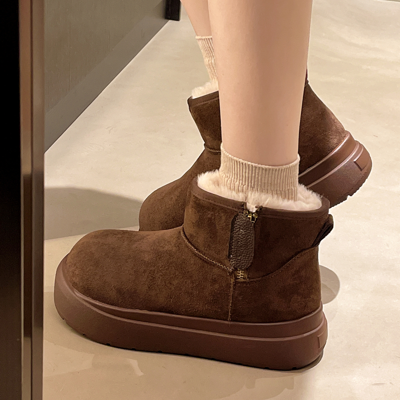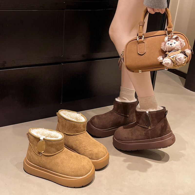 女靴子靴子韩版潮时尚保暖防滑绒面短靴圆头