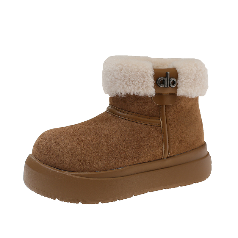 女靴子靴子韩版潮时尚保暖防滑绒面短靴圆头