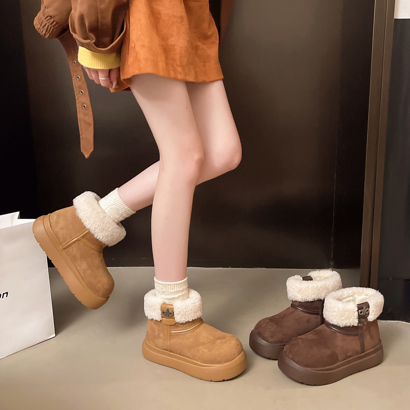 女靴子靴子韩版潮时尚保暖防滑绒面短靴圆头