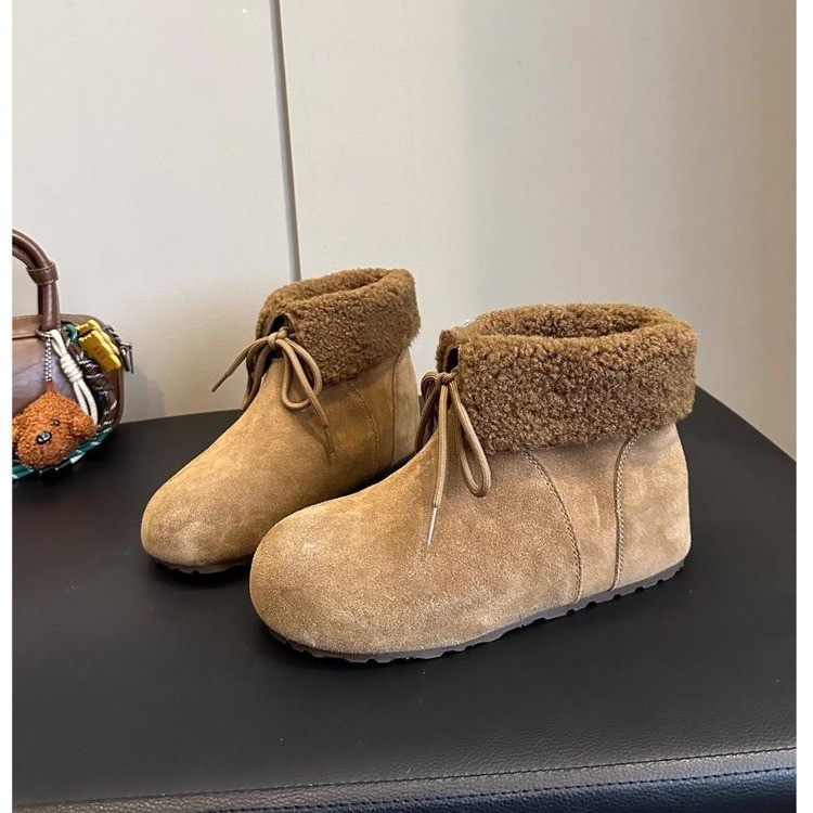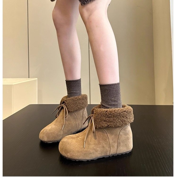 女靴子靴子韩版潮时尚保暖防滑绒面短靴圆头