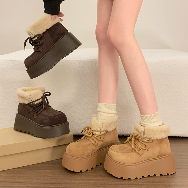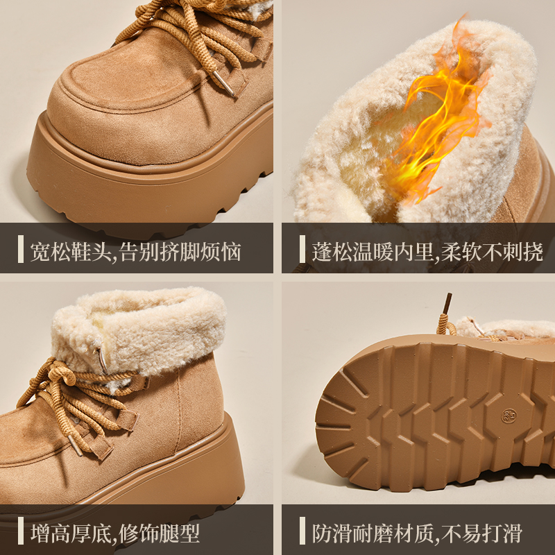 女靴子靴子韩版潮时尚保暖防滑绒面短靴圆头