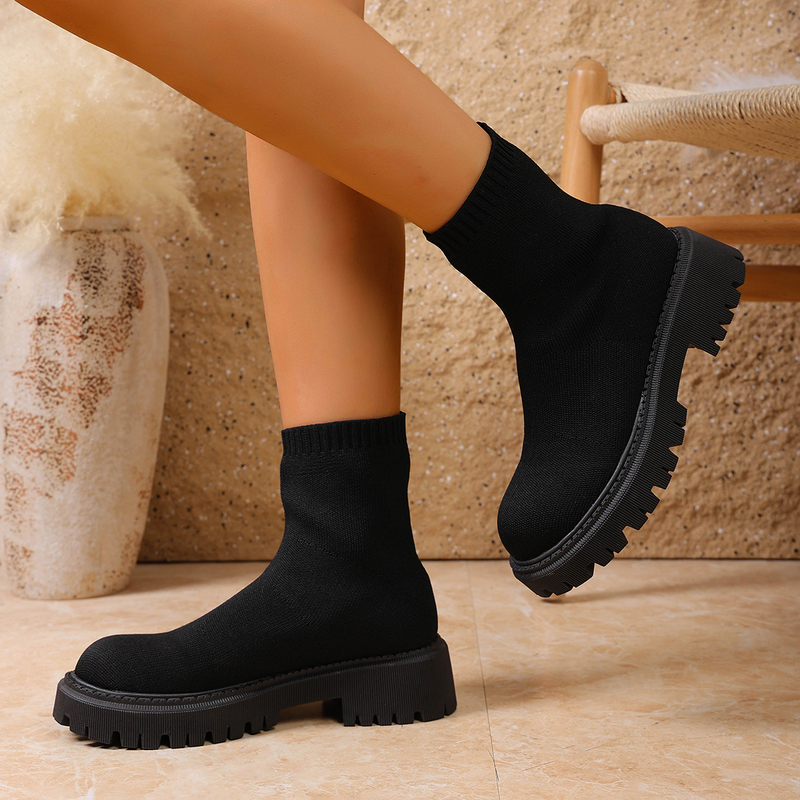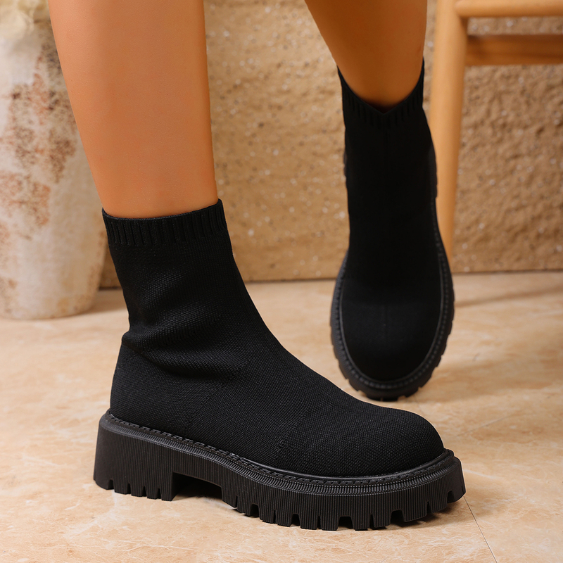 女靴子靴子韩版潮时尚保暖防滑短靴圆头粗跟