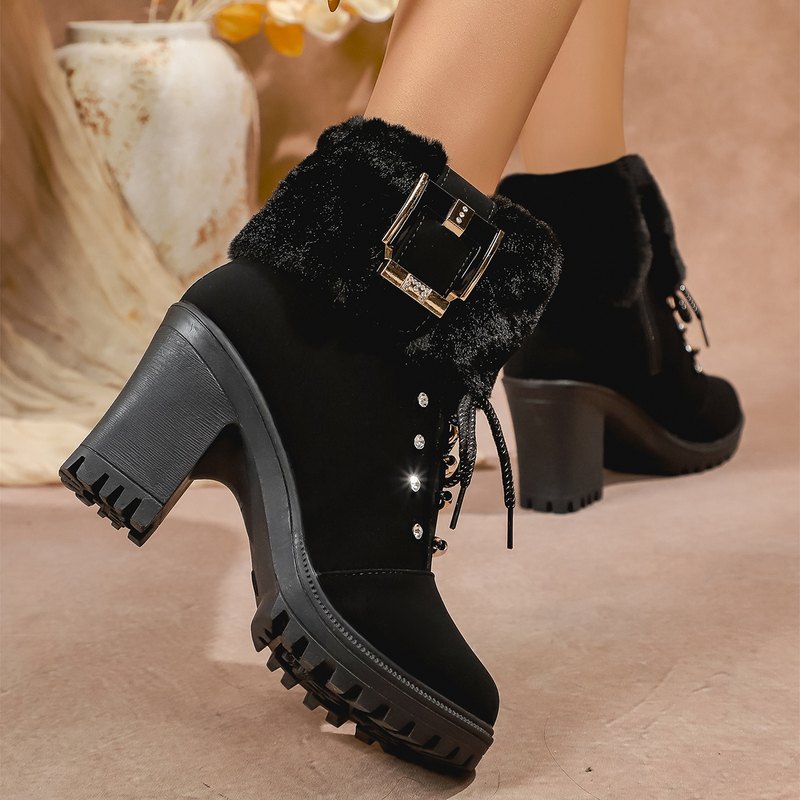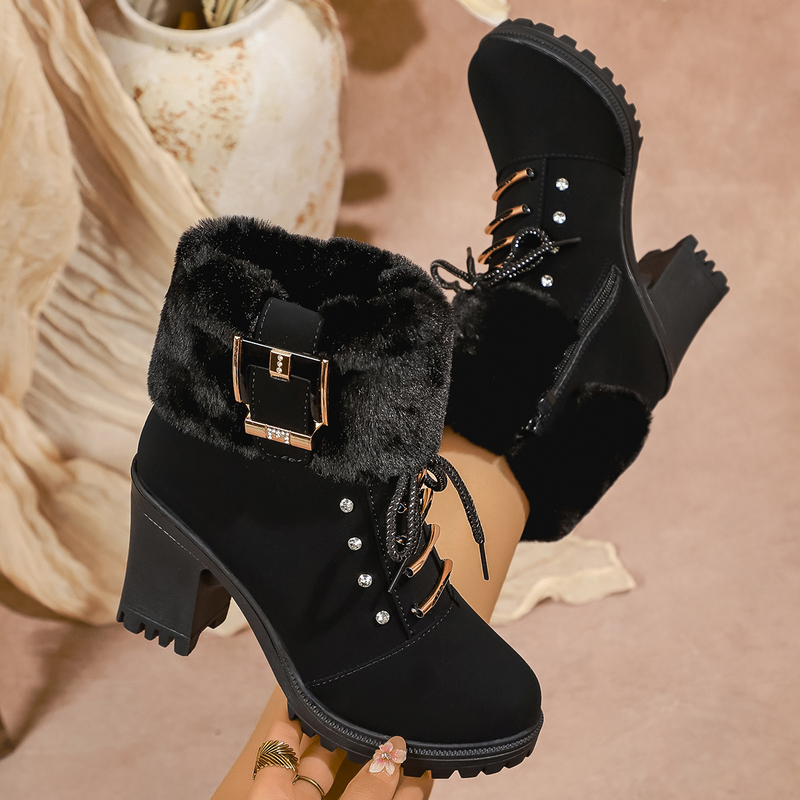 女靴子靴子韩版潮时尚保暖防滑短靴圆头粗跟