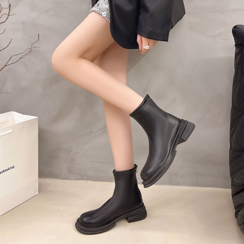 女靴子靴子韩版潮时尚保暖防滑短靴圆头粗跟
