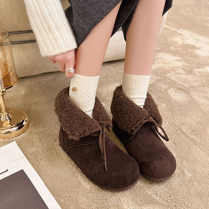 女靴子靴子韩版潮时尚保暖防滑绒面短靴圆头