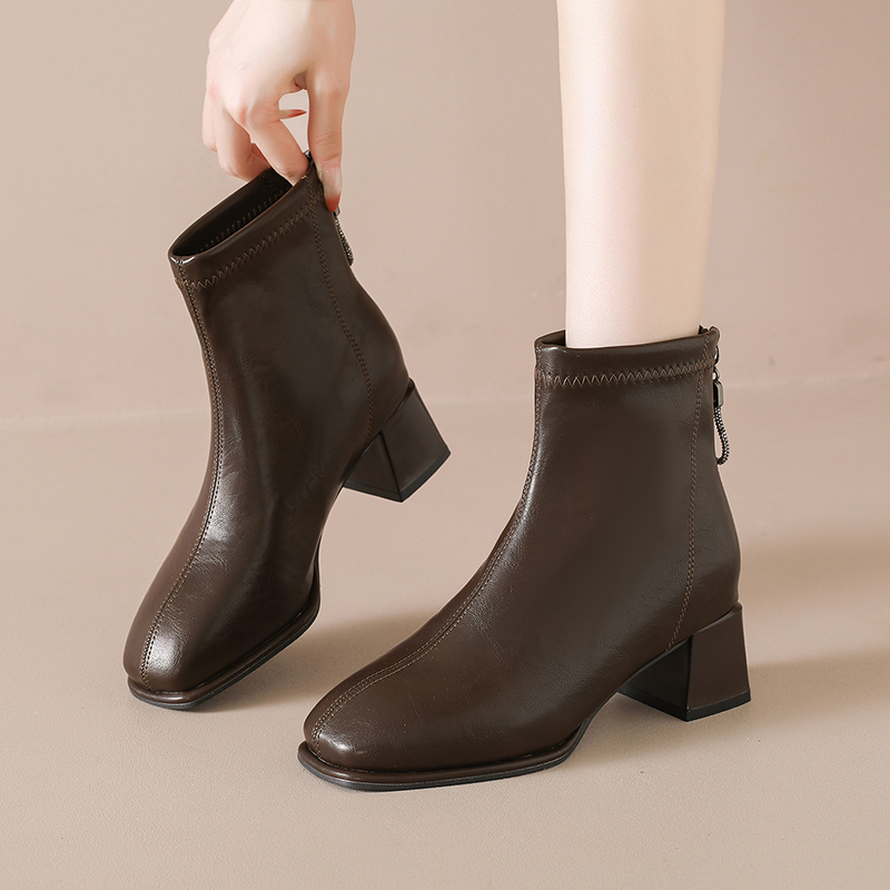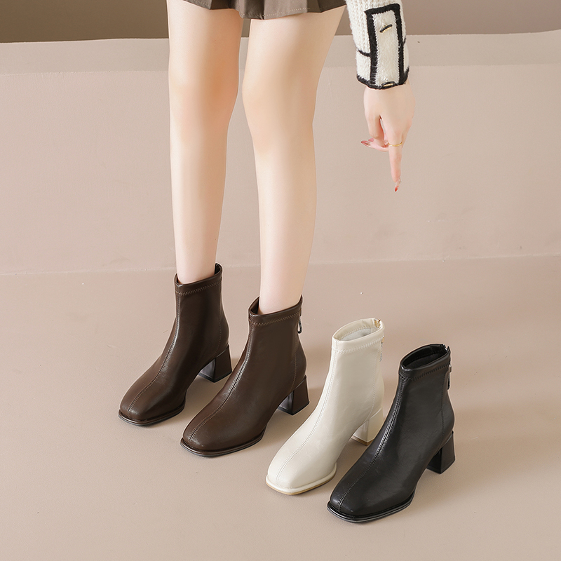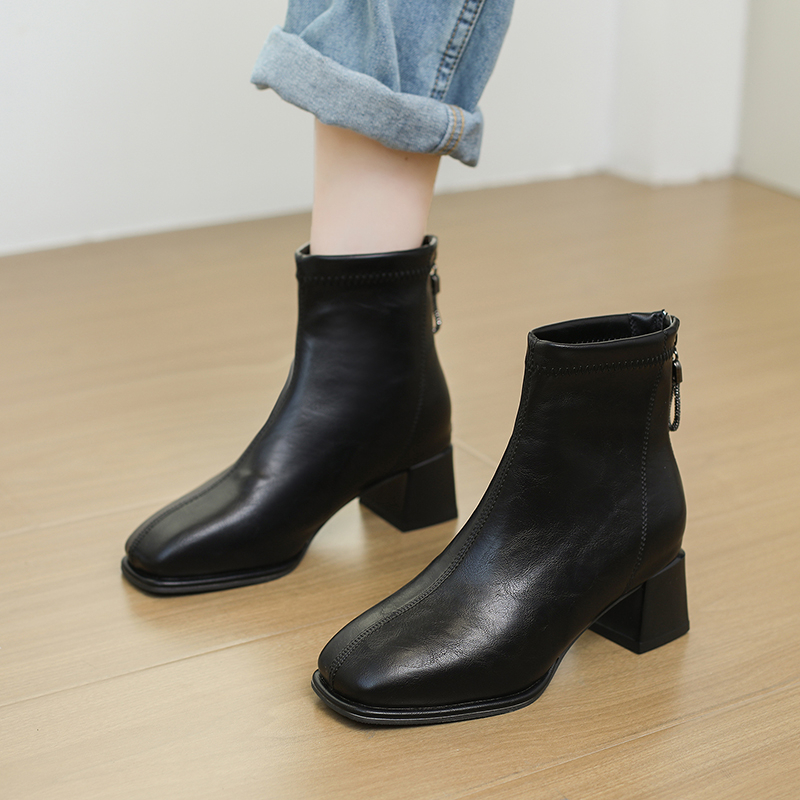 女靴子靴子韩版潮时尚保暖防滑短靴圆头粗跟