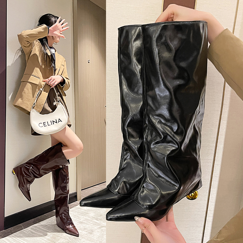 女靴子靴子韩版潮时尚保暖防滑长靴圆头粗跟