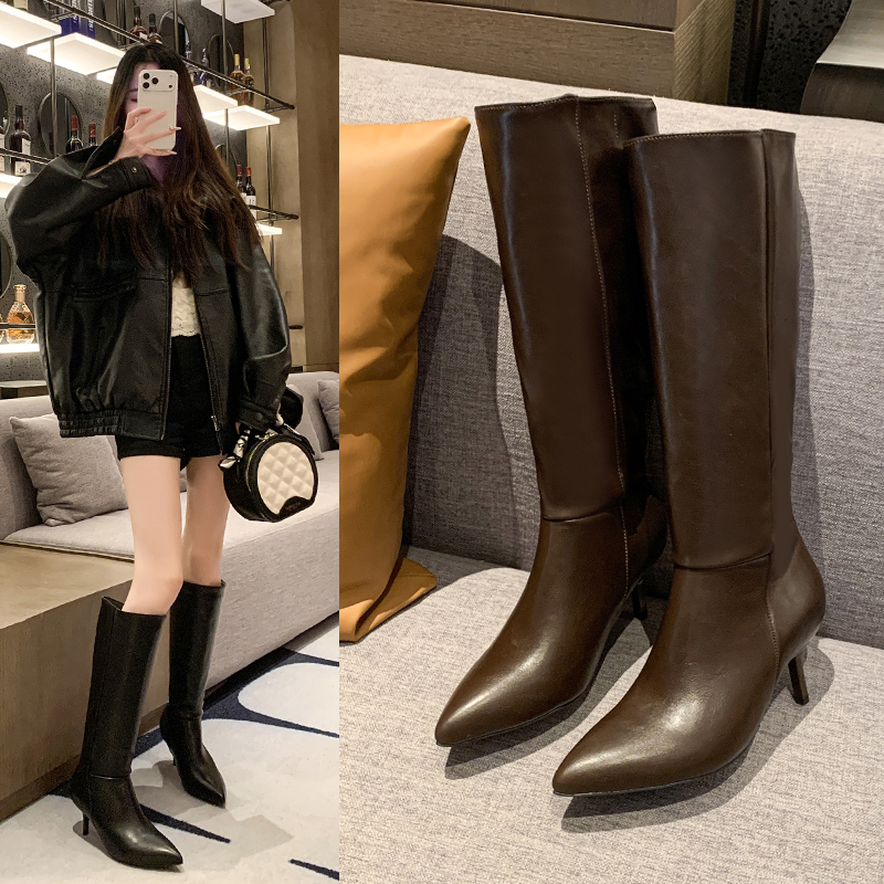 女靴子靴子韩版潮时尚保暖防滑长靴圆头粗跟