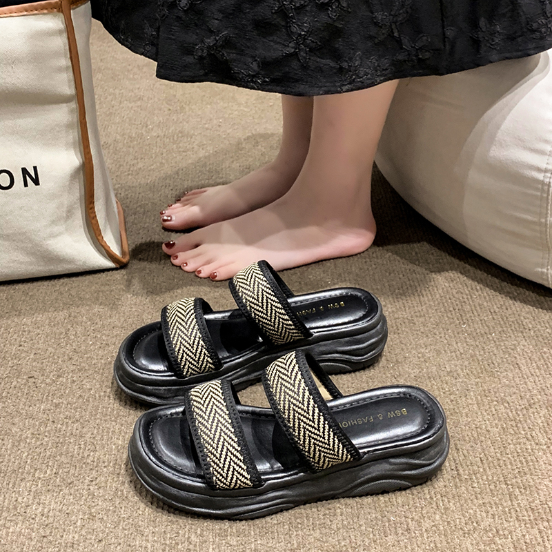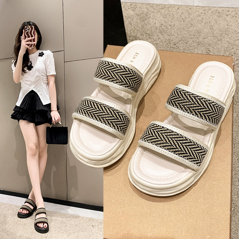 2022夏季凉拖鞋休闲鞋女鞋子拖鞋欧美英伦时尚松糕鞋