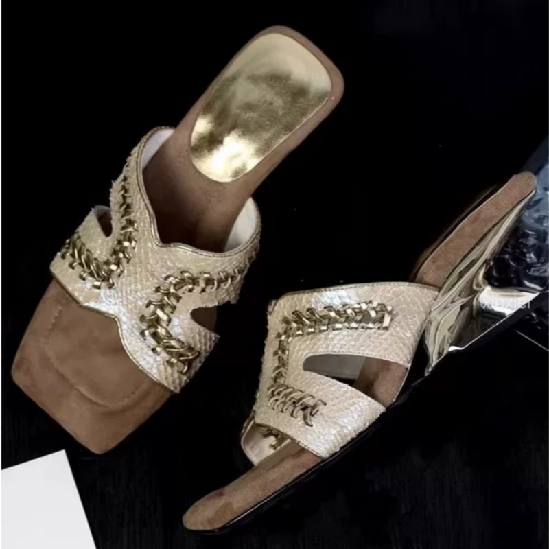 2022夏季凉拖鞋休闲鞋女鞋子拖鞋欧美英伦时尚粗跟