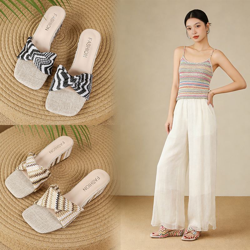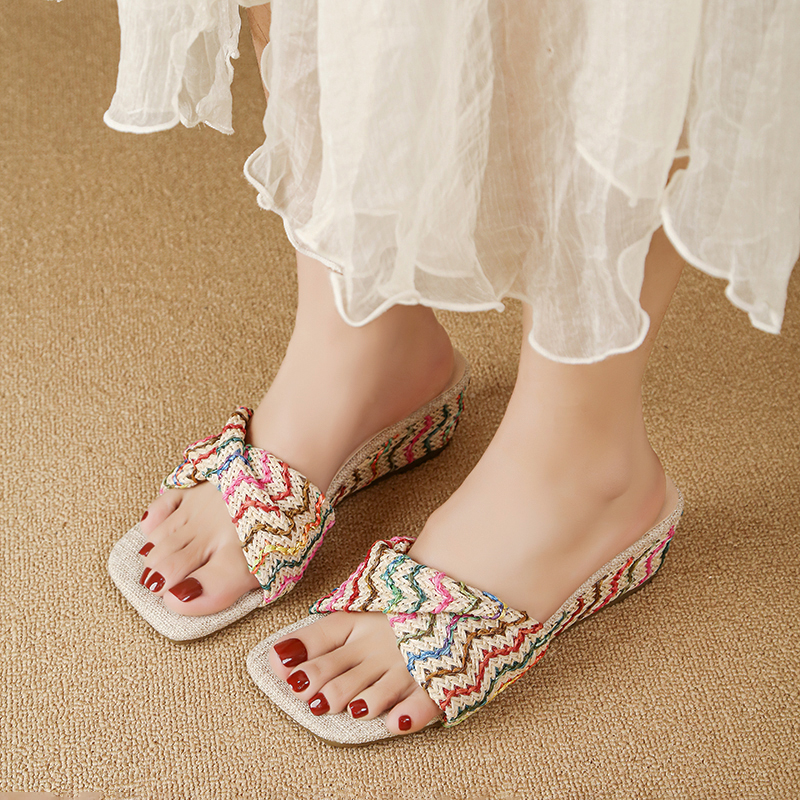 2022夏季凉拖鞋休闲鞋女鞋子拖鞋欧美英伦时尚坡跟