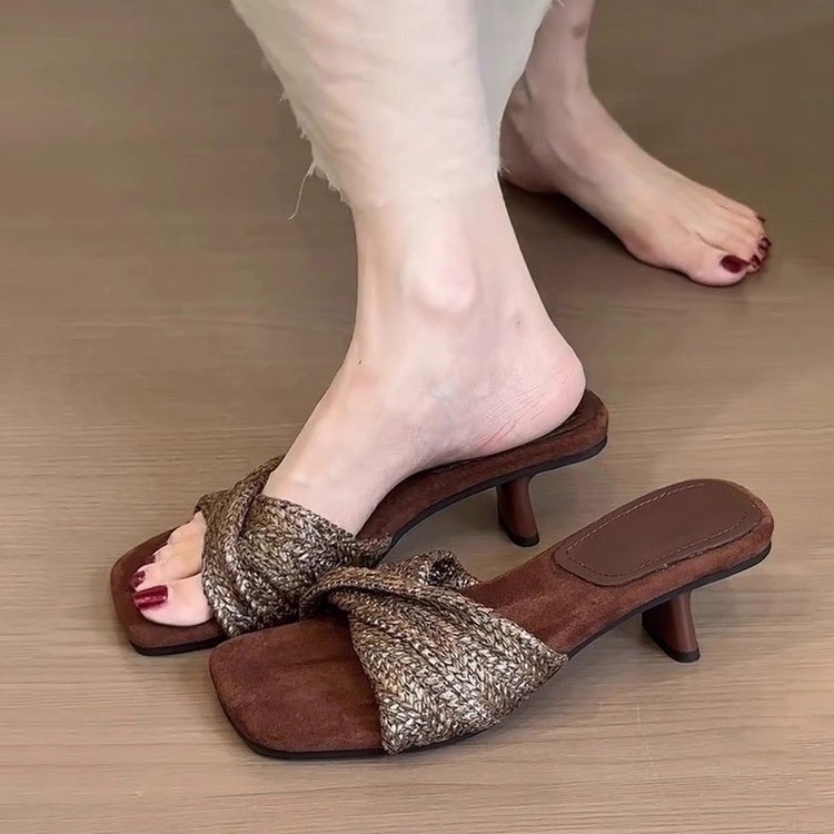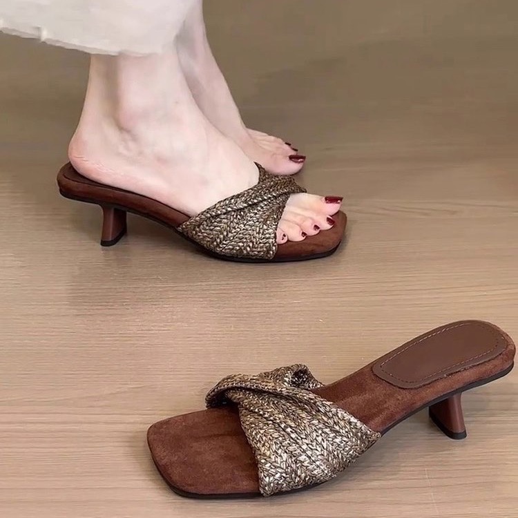 2022夏季凉拖鞋休闲鞋女鞋子拖鞋欧美英伦时尚粗跟