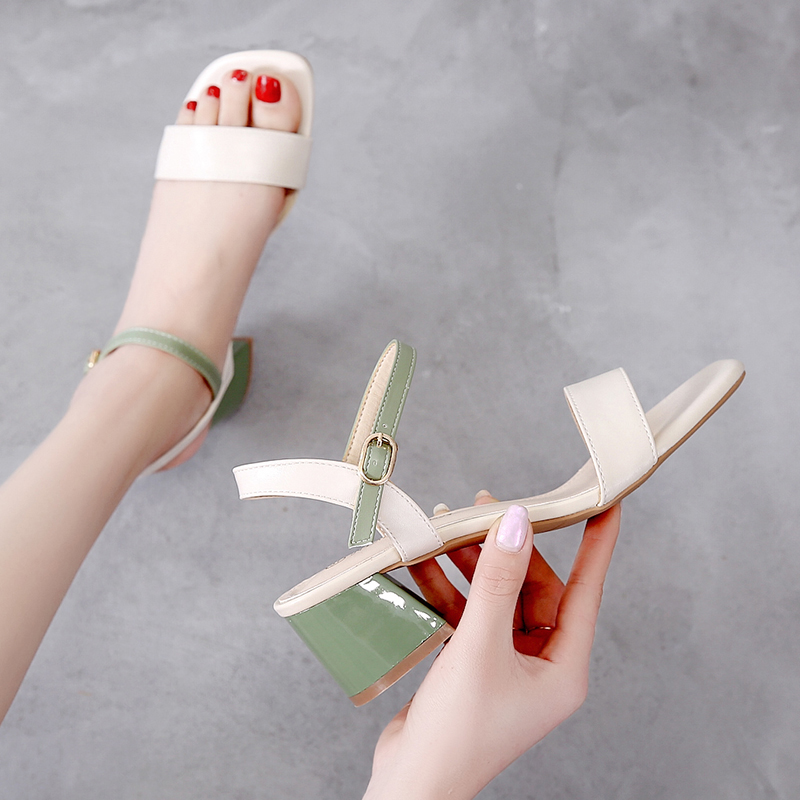 2022夏季凉鞋休闲鞋女鞋子凉鞋韩版时尚潮沙滩鞋英伦露趾中跟粗跟低帮