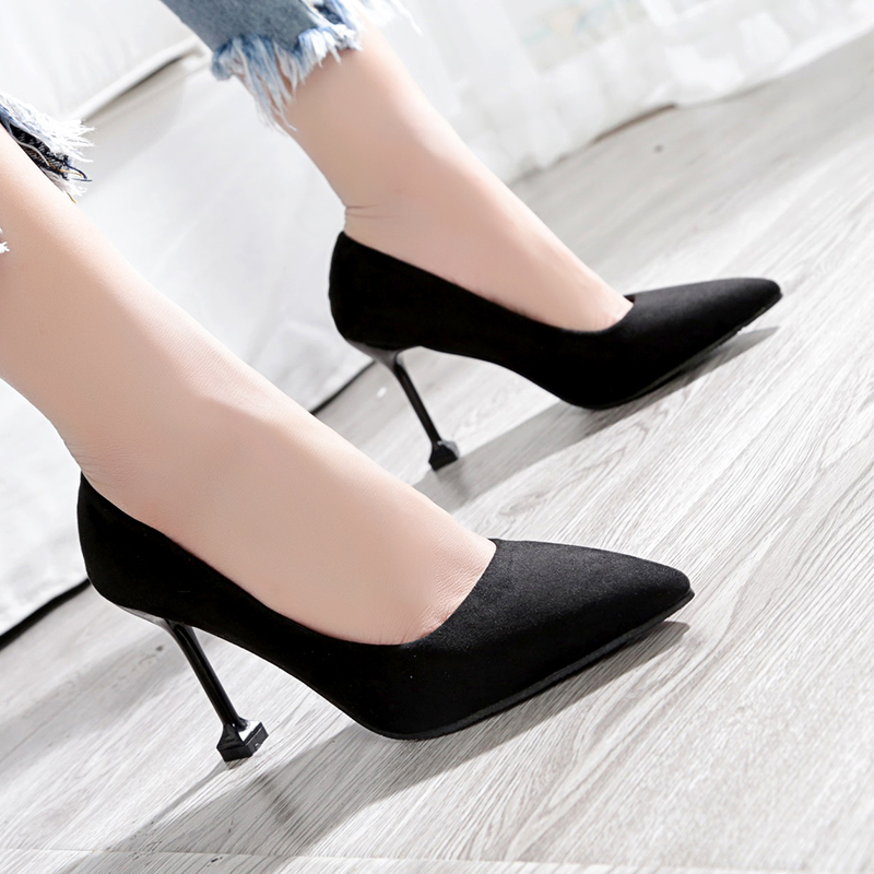 2022春夏季新款单鞋女鞋子低帮鞋韩版时尚学生绒面浅口尖头高跟鞋细跟