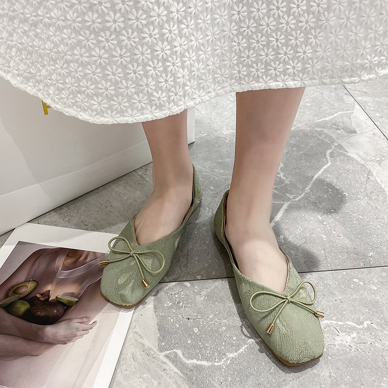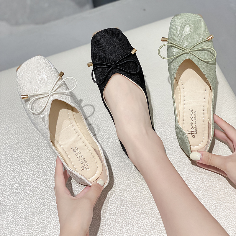 2022春夏季新款单鞋女鞋子低帮鞋韩版时尚学生简约绒面浅口平跟蝴蝶结