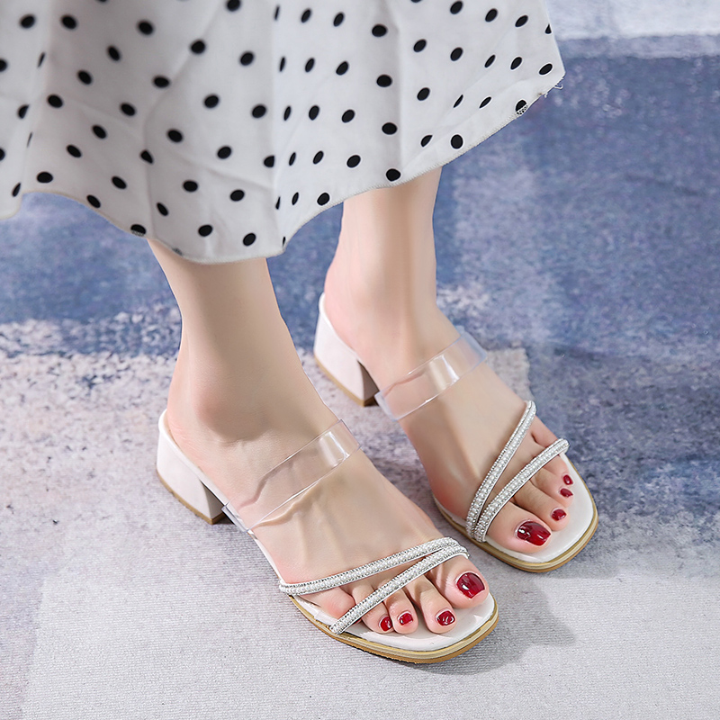 2021夏季凉拖鞋休闲鞋女鞋子拖鞋韩版潮时尚学生中跟粗跟