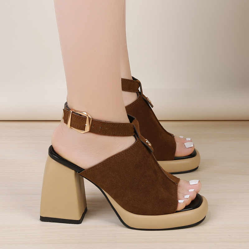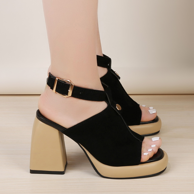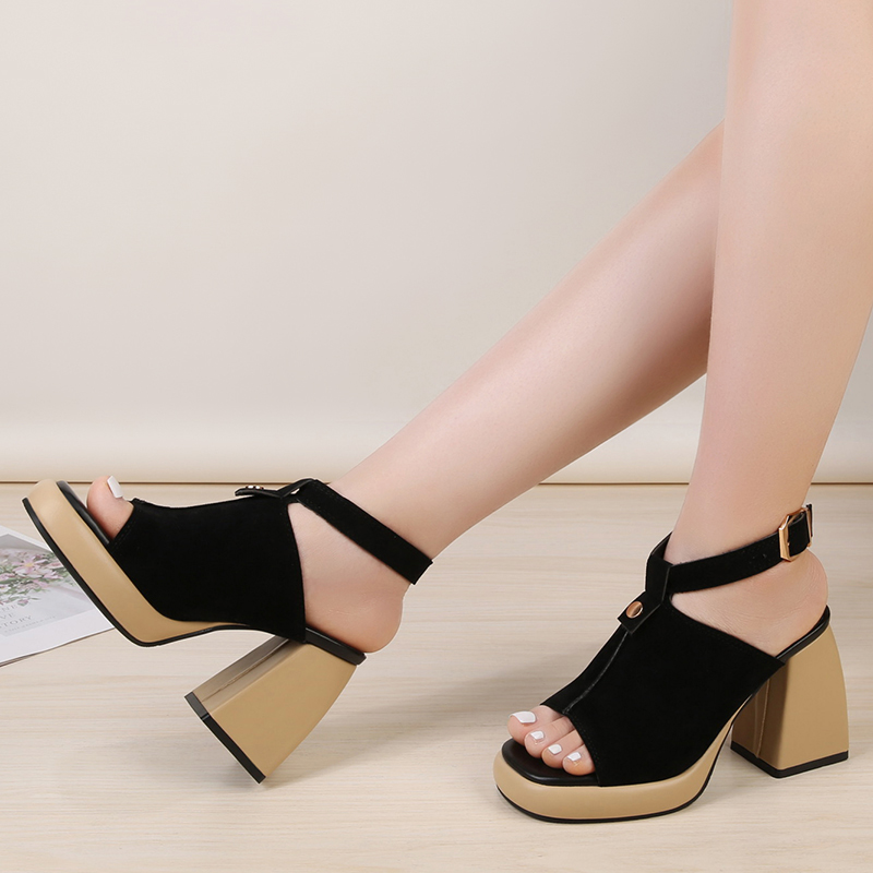 2022夏季凉鞋休闲鞋女鞋子凉鞋韩版时尚潮沙滩鞋露趾粗跟