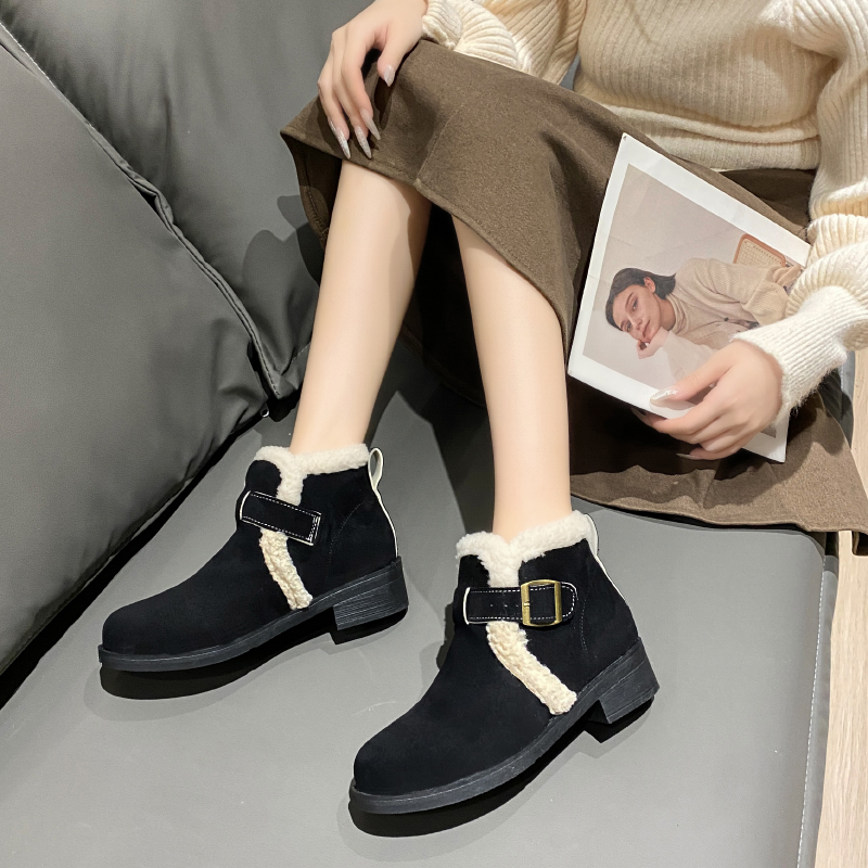 女靴子靴子韩版潮时尚保暖防滑绒面短靴圆头