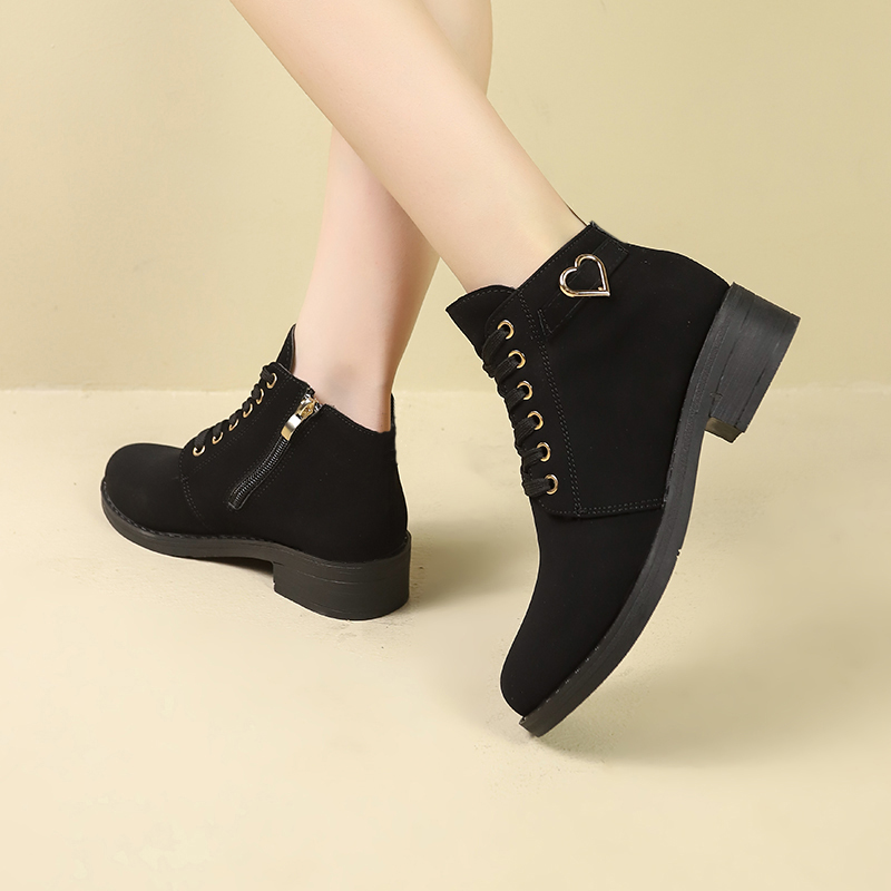 女靴子靴子韩版潮时尚保暖防滑短靴圆头粗跟