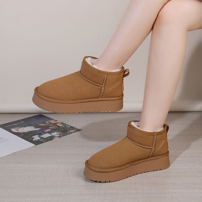 女靴子靴子韩版潮时尚保暖防滑绒面短靴圆头