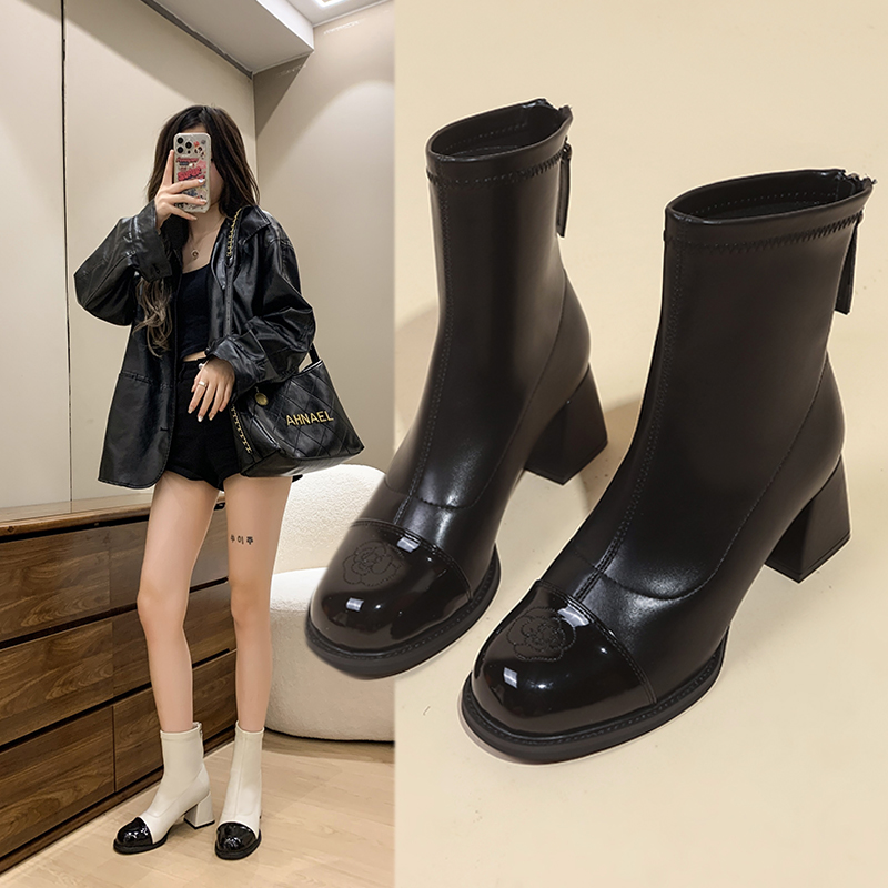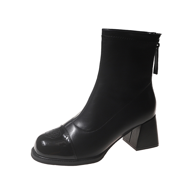 女靴子靴子韩版潮时尚保暖防滑短靴圆头粗跟