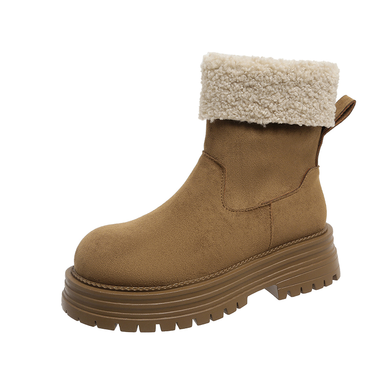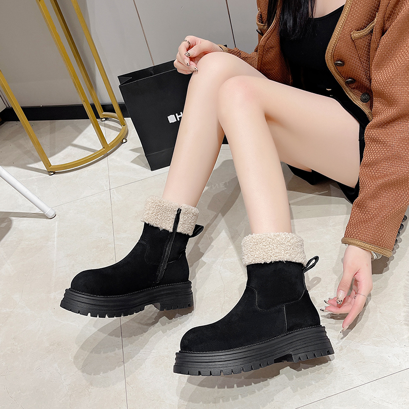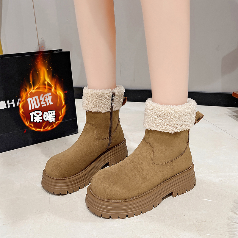 女靴子靴子韩版潮时尚保暖防滑绒面短靴圆头