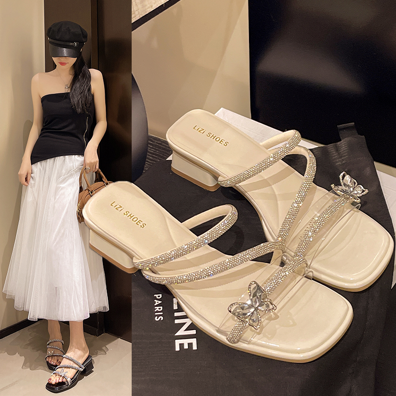 2022夏季凉拖鞋休闲鞋女鞋子拖鞋欧美英伦时尚粗跟