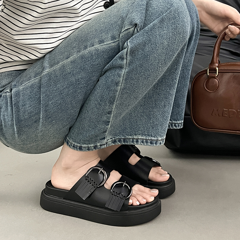 2022夏季凉拖鞋休闲鞋女鞋子拖鞋欧美英伦时尚松糕鞋