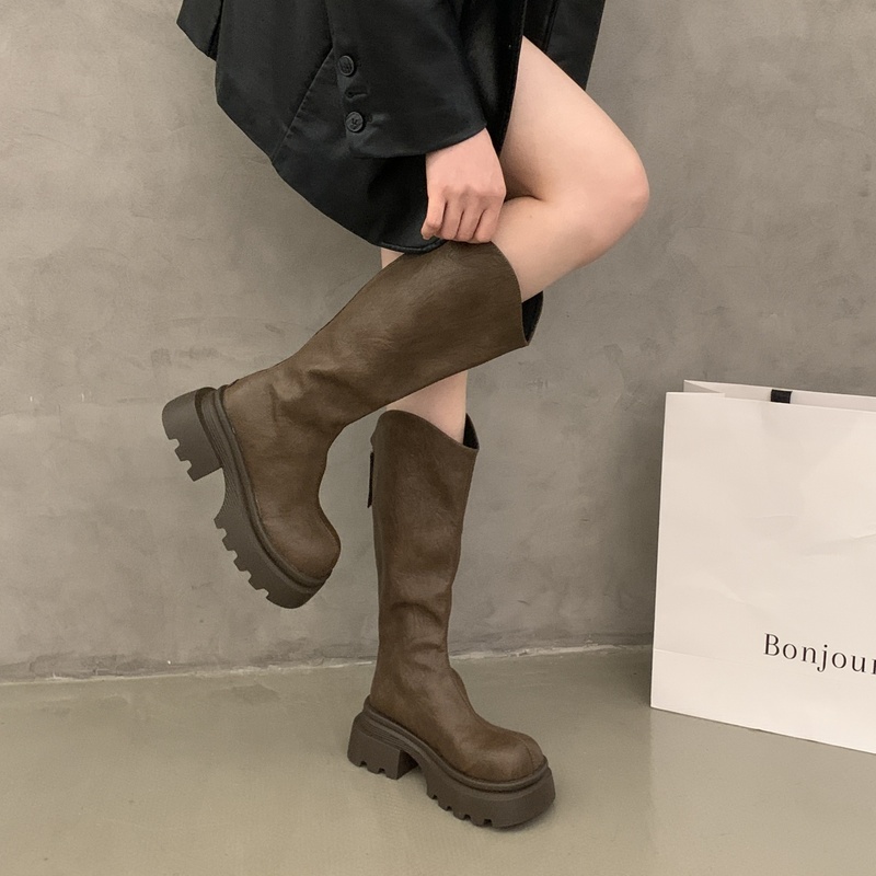 女靴子靴子韩版潮时尚保暖防滑长靴圆头粗跟