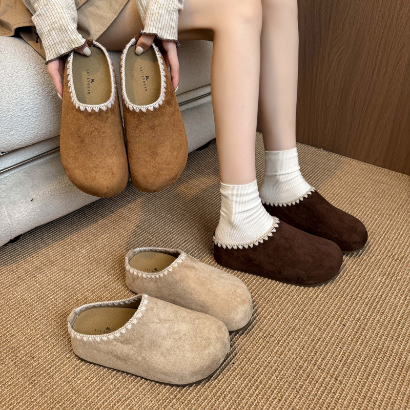 2022夏季凉拖鞋休闲鞋女鞋子拖鞋欧美英伦时尚公主绒面 包头松糕鞋