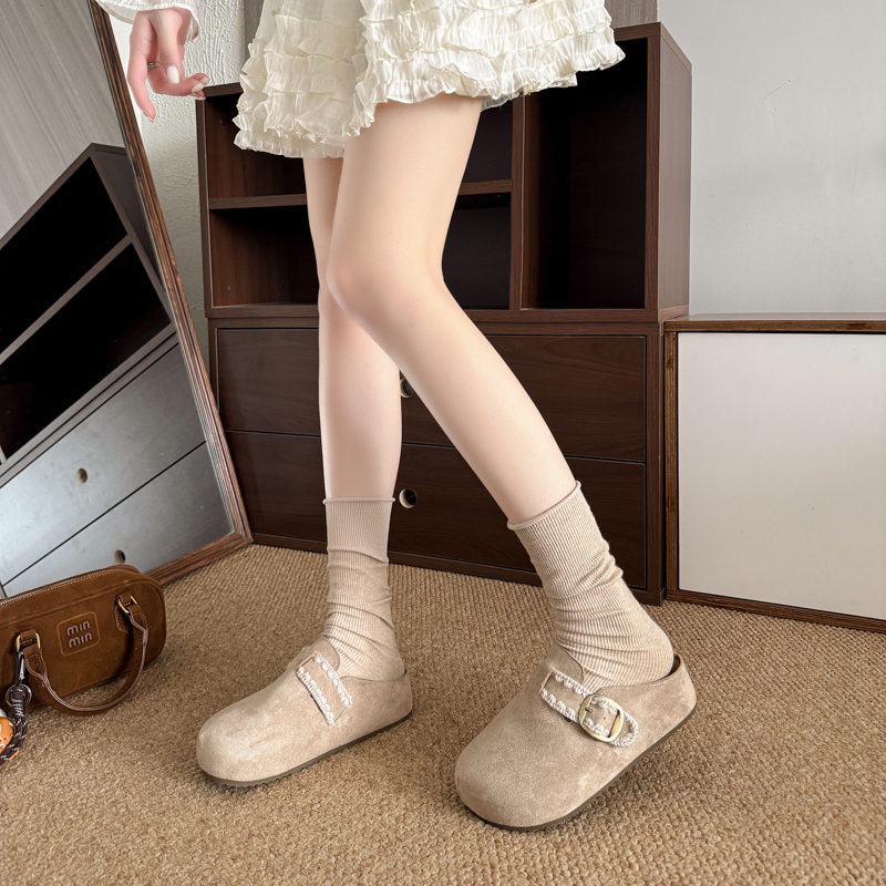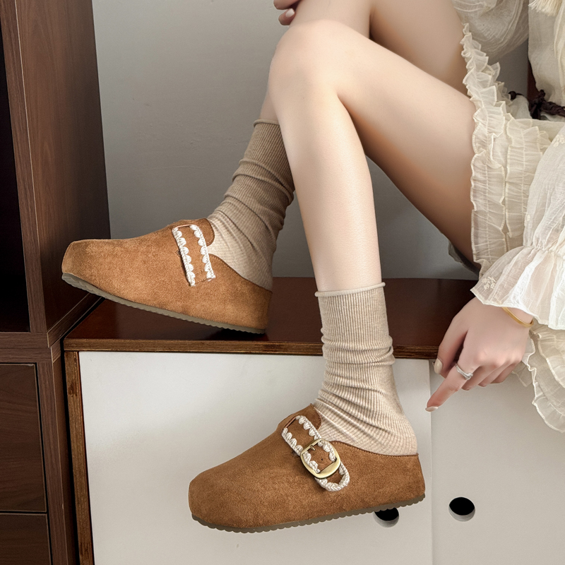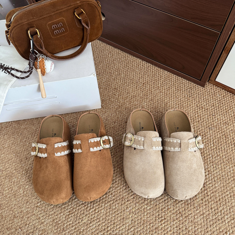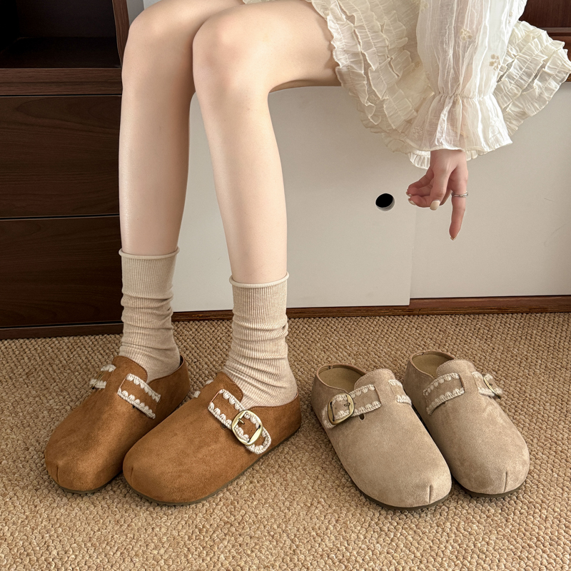 2022夏季凉拖鞋休闲鞋女鞋子拖鞋欧美英伦时尚学院绒面 包头松糕鞋