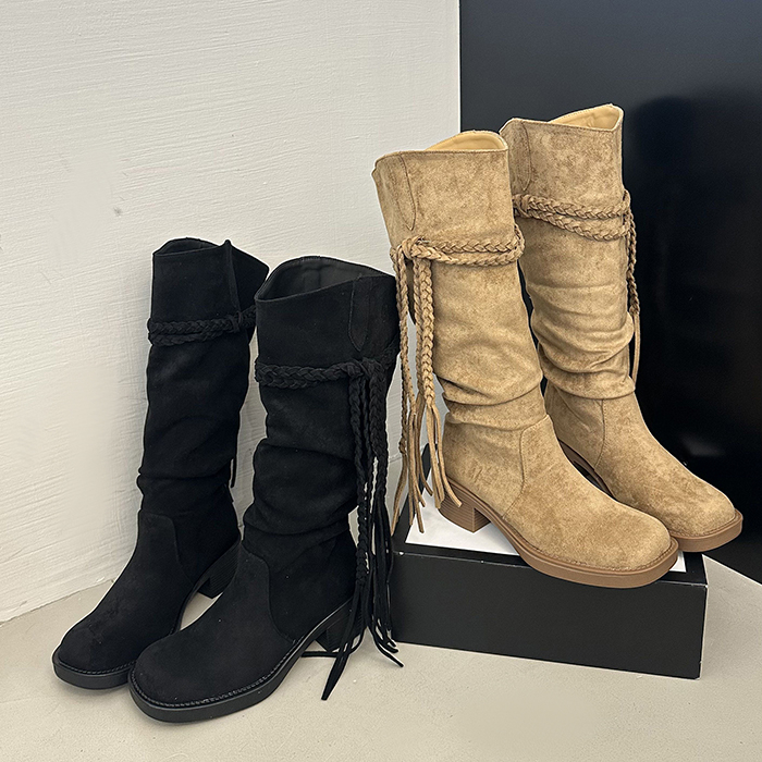 女靴子靴子韩版潮时尚保暖防滑长靴圆头粗跟