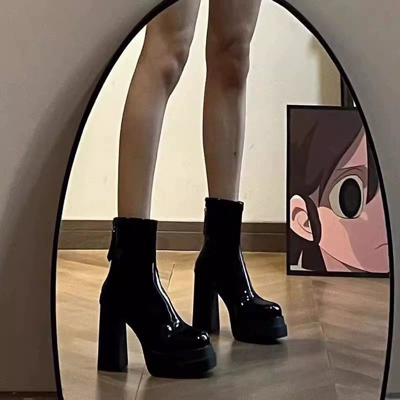 女靴子靴子韩版潮时尚保暖防滑短靴圆头粗跟