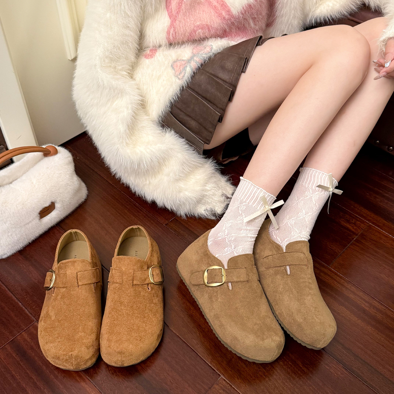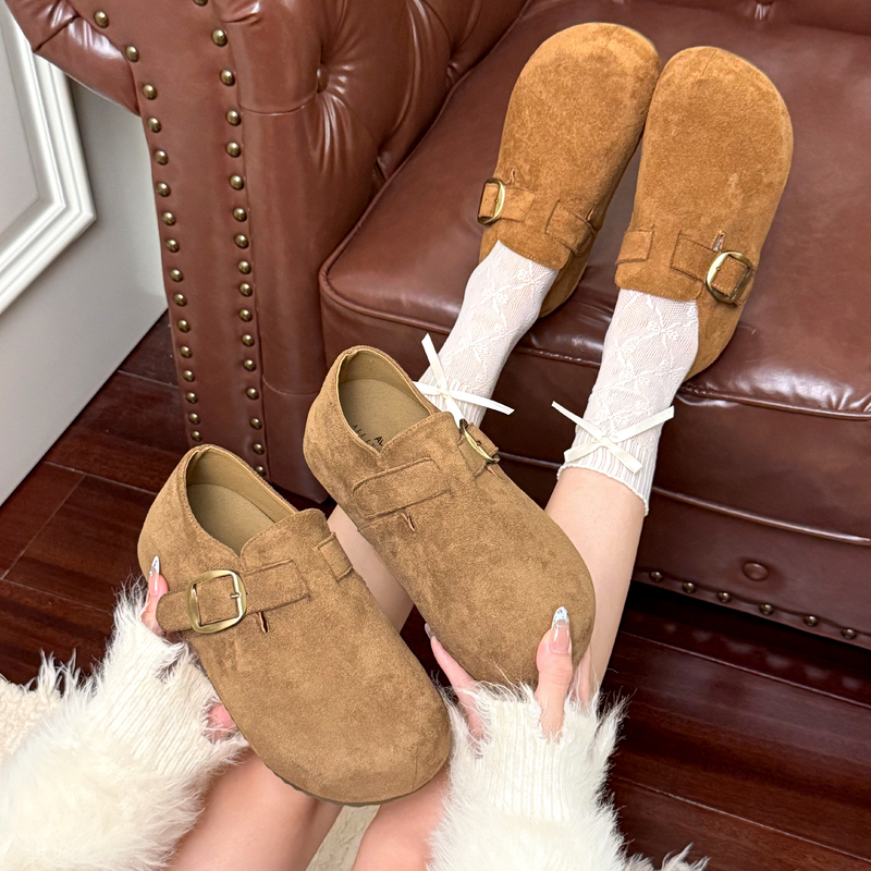 2022春夏季新款单鞋女鞋子低帮鞋韩版时尚学生学院绒面圆头松糕鞋