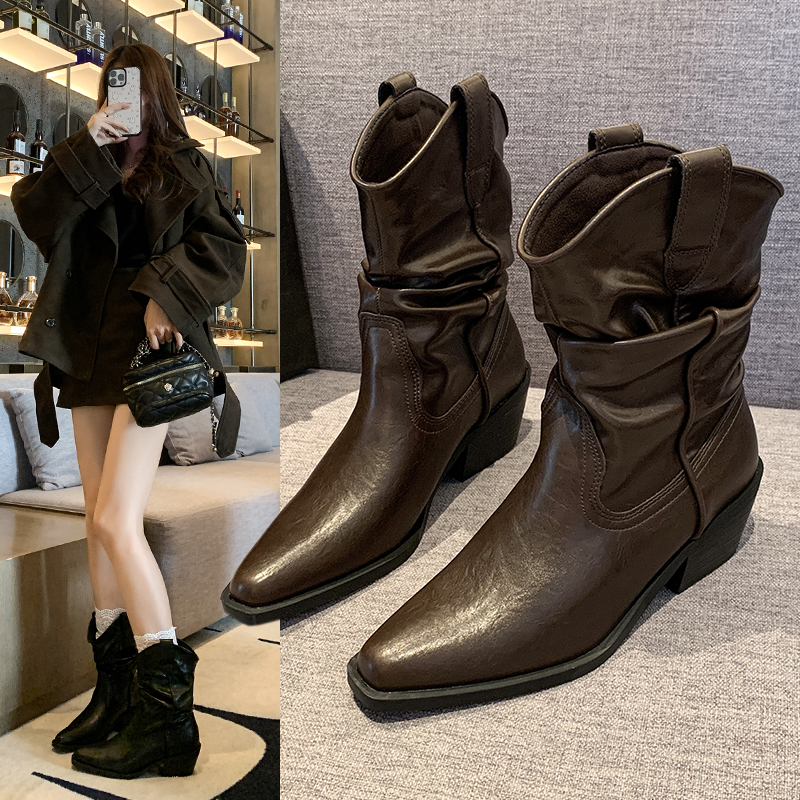 女靴子靴子韩版潮时尚保暖防滑短靴圆头粗跟