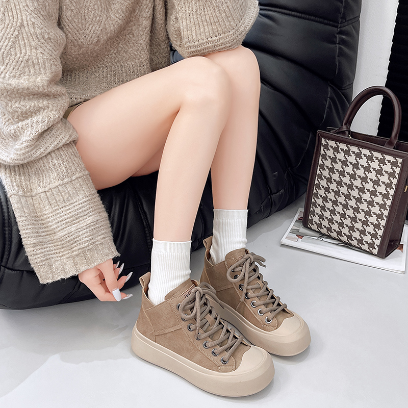 2022春季高帮鞋休闲运动鞋女鞋子单鞋高帮鞋欧美英伦时尚