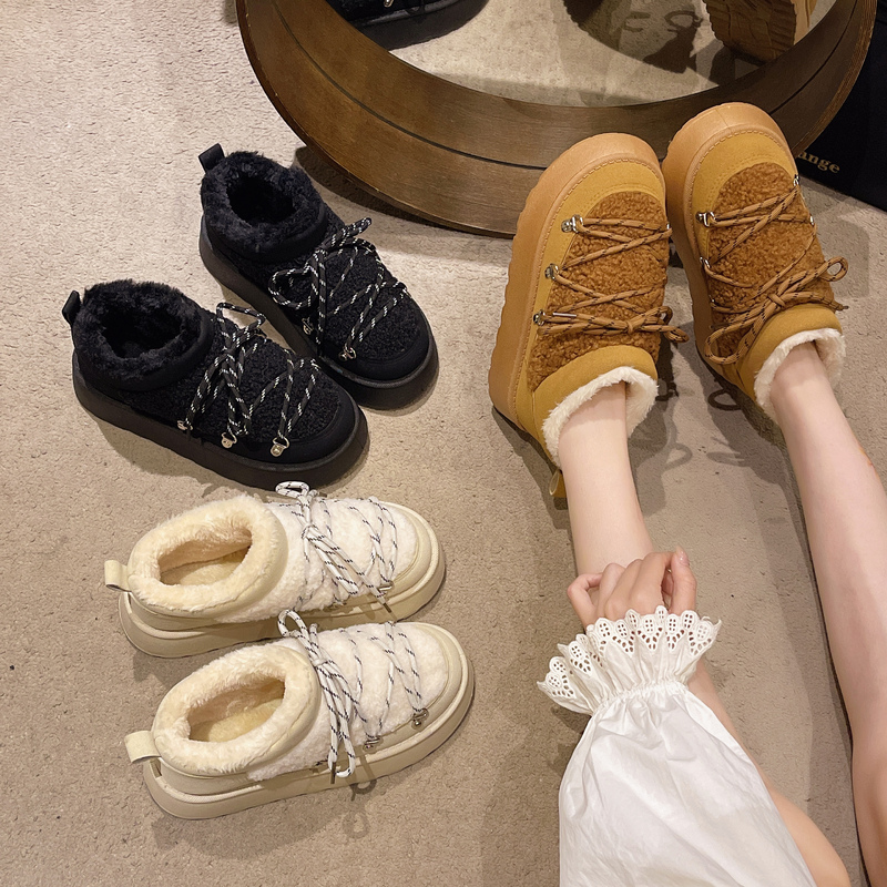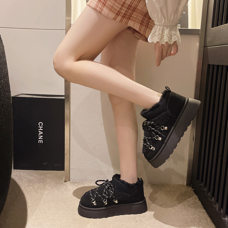 女靴子靴子韩版潮时尚保暖防滑绒面短靴圆头