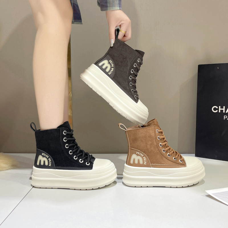 2022春季高帮鞋休闲运动鞋女鞋子单鞋高帮鞋欧美英伦时尚